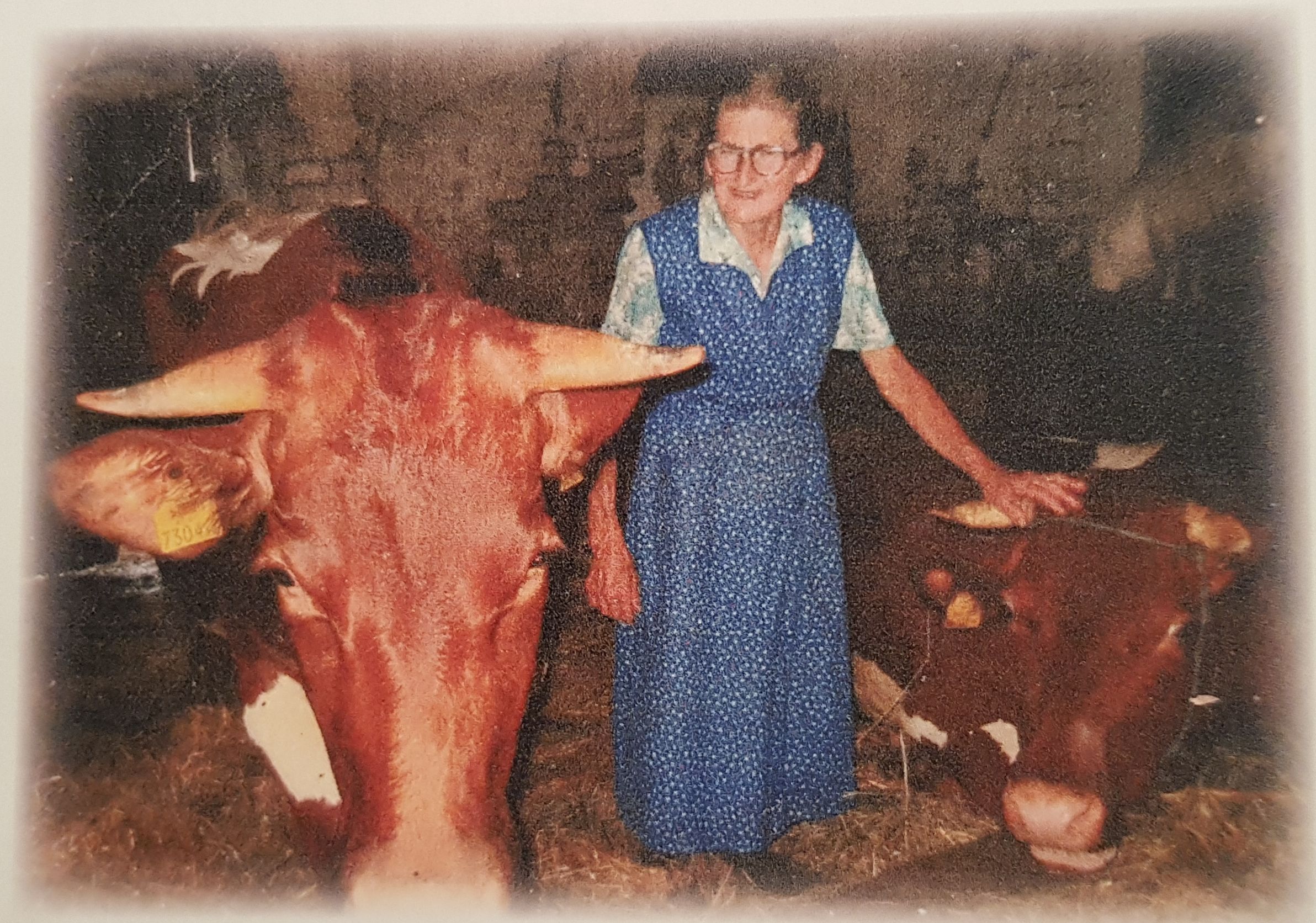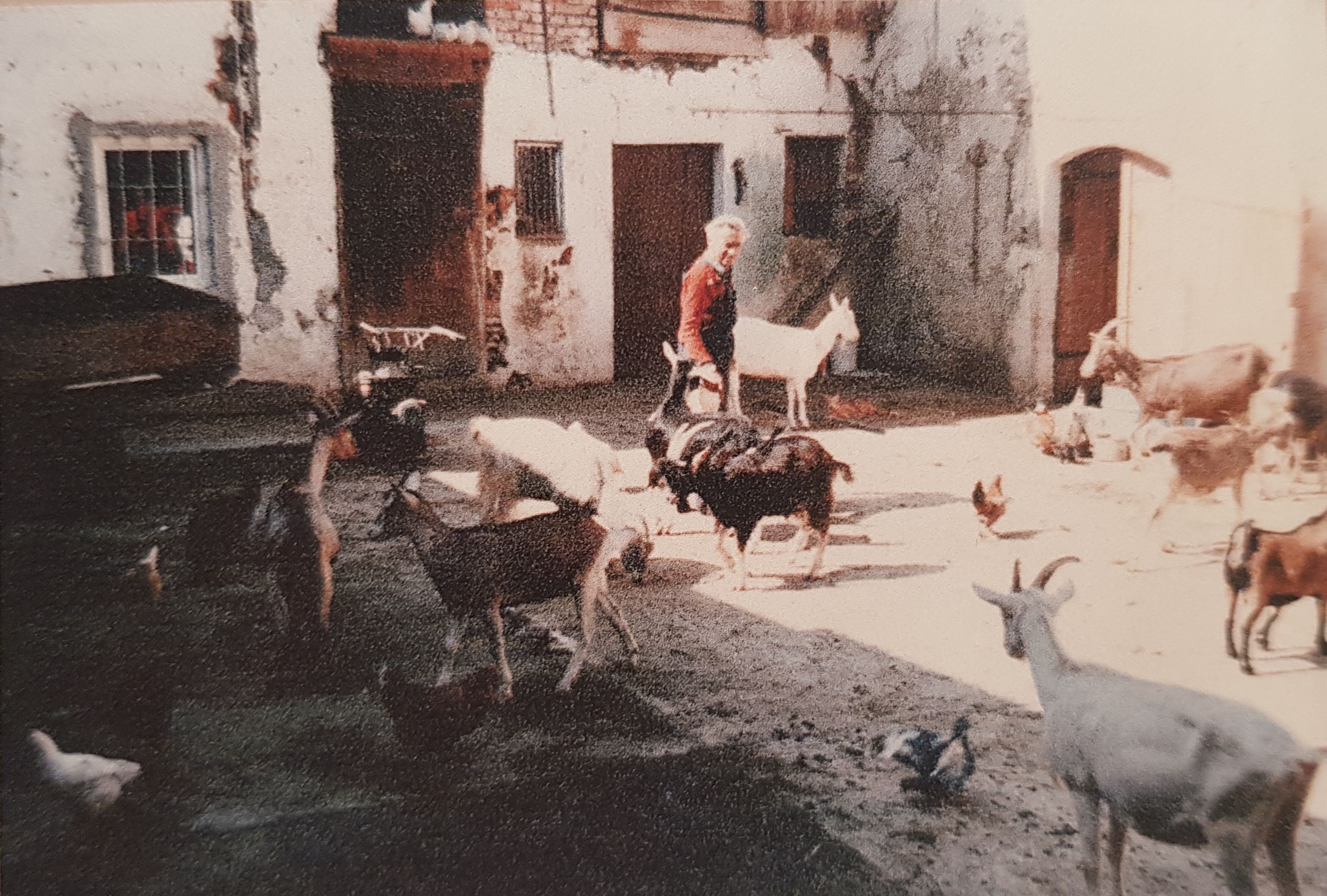 | Sophie führte den Hof mit vielen Tieren (Kühe, Pferde, Schweine, Hühner, Esel, Ziegen, Lämmer, Hunde, …). |